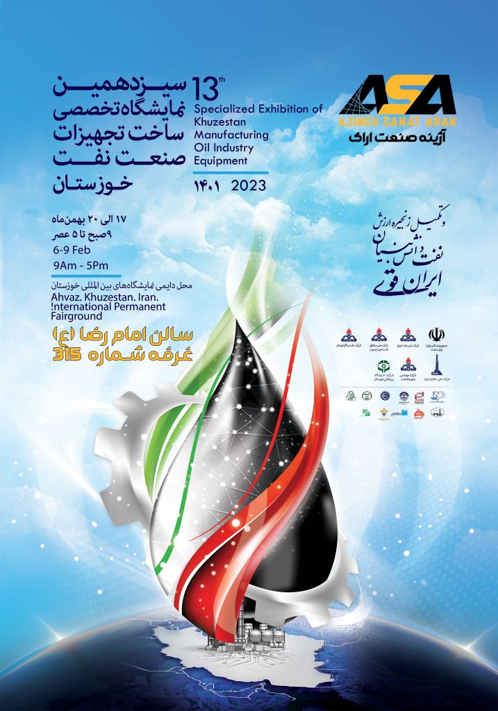 شرکت آژینه صنعت اراک با حضور در سیزدهمین نمایشگاه تخصصی ساخت تجهیزات صنعت نفت خوزستان که در تاریخ هفدهم الی بیستم بهمن ماه سال هزار و چهارصد و یک برگزار شد اقدام به ارائه محصولات تولیدی شرکت در زمینه تجهیزات صنعت نفت نمود.
